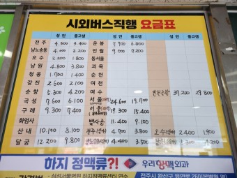 속초에서 부산가는 버스 요금 정보