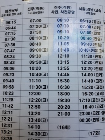 전주에서 군산가는 버스 시간표